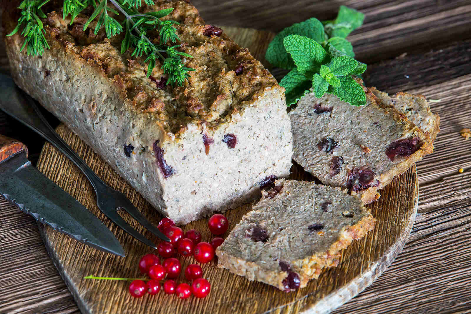 Pasztet produkowany ręcznie z mięsa z dzika z dodaną wieprzowiną. Delikatnie przyprawiony naturalnymi przyprawami z dodatkiem żurawiny, daje to lekki, słodko-winny smak.