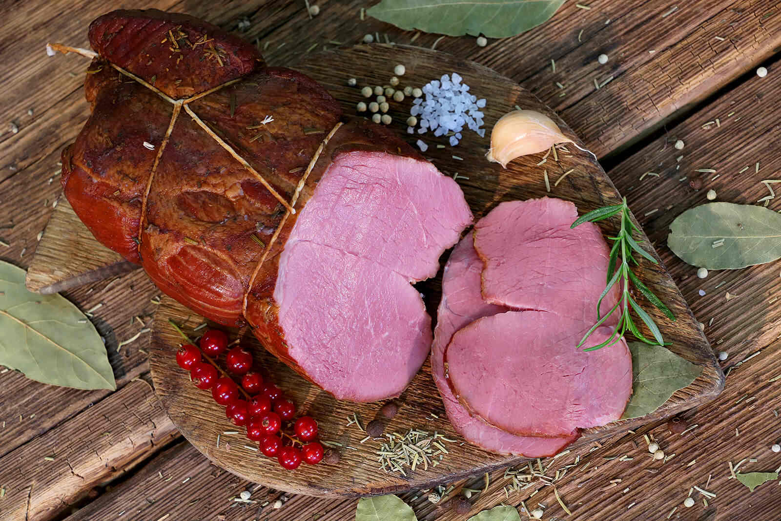 Jednym z atutów naszej szynki z jelenia jest jej pochodzenie – mięso pozyskiwane jest z okolic Białowieskiej Puszczy, co gwarantuje wysoką jakość produktu. Ciemno-różowa barwa szynki świadczy o dużej zawartości żelaza, dzięki czemu mięso jest nie tylko smaczne, ale również zdrowe. Szynka z jelenia to propozycja polecana przez lekarzy wielu osobom ze względu na jej wartości odżywcze.
